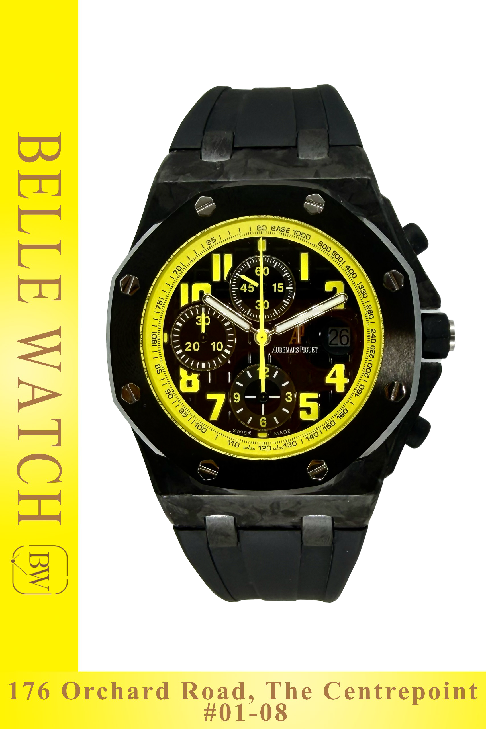 Preowned 2010 Audemars Piguet 26176FO Royal Oak Offshore "Bumblebee" Black Dial Forged Carbon Case Ceramic Bezel Rubber Strap