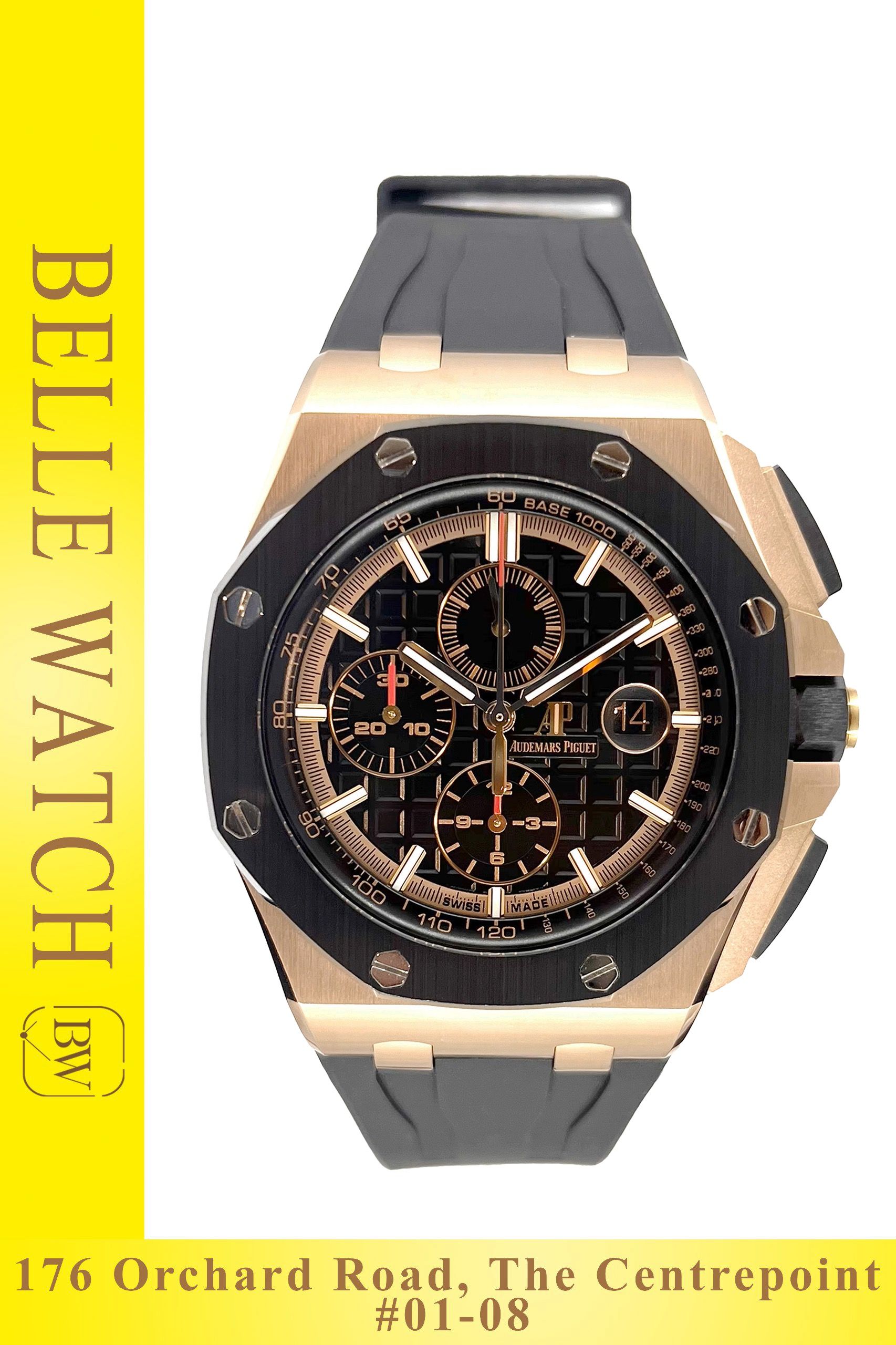 Preowned 2019 Audemars Piguet ROO 26401RO Royal Oak Offshore Chronograph Ceramic Bezel Rose Gold casing (Card Warranty)